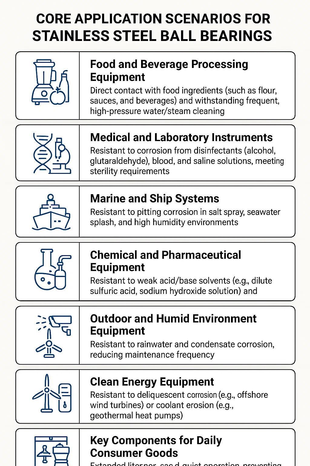 Základní scénáře aplikací pro Ložiska z nerezové oceli