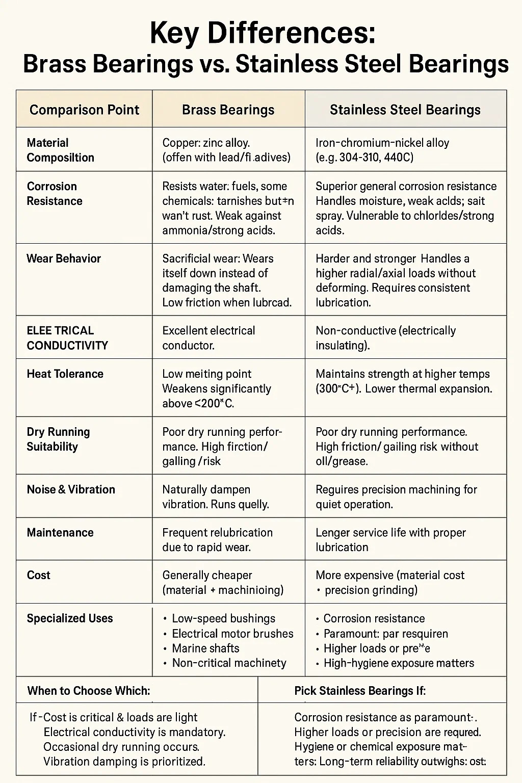 Zde je podrobné srovnání mosazných ložisek a Ložiska z nerezové oceli :